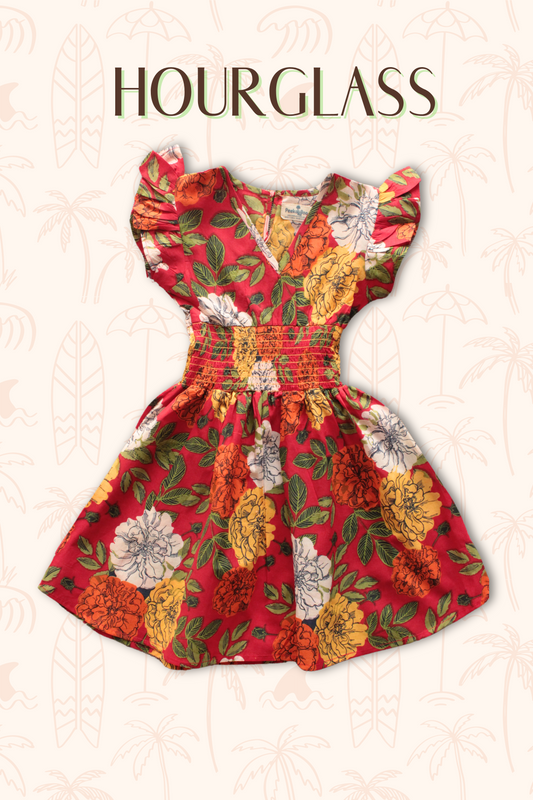 Girls Hourglass Cotton Smocked Waistline Dress - Red