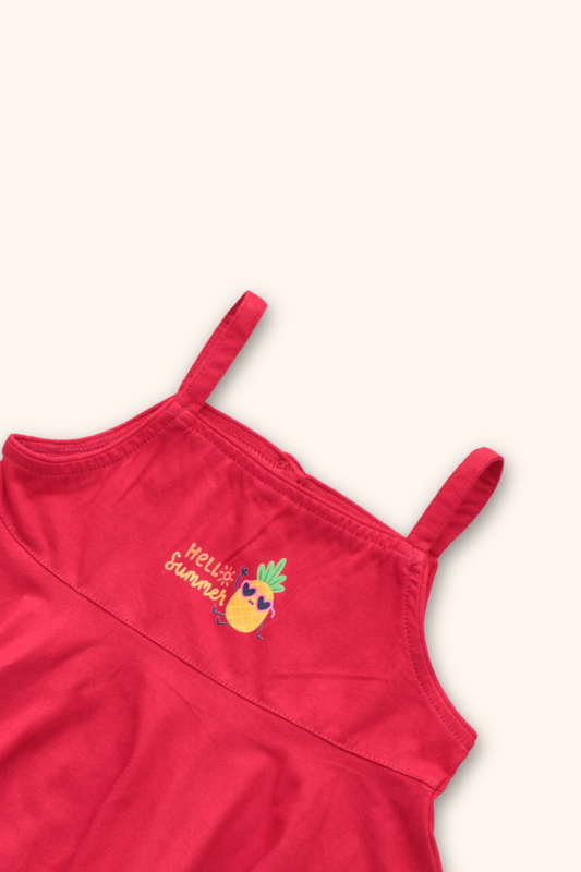 Girls Bella 100% Cotton Summer Top Combo - Red & Olive