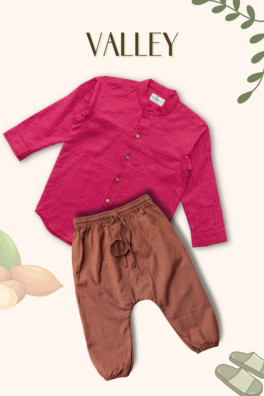 Boys Valley Pure Cotton Shirt With Miyani Pants Set - Red