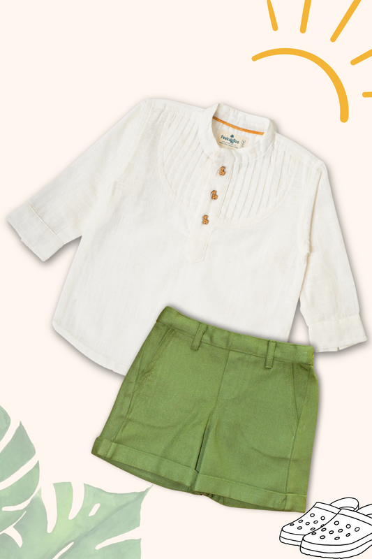 Boys Pure Cotton Clothing Set - White Pintuck Shirt & Shorts