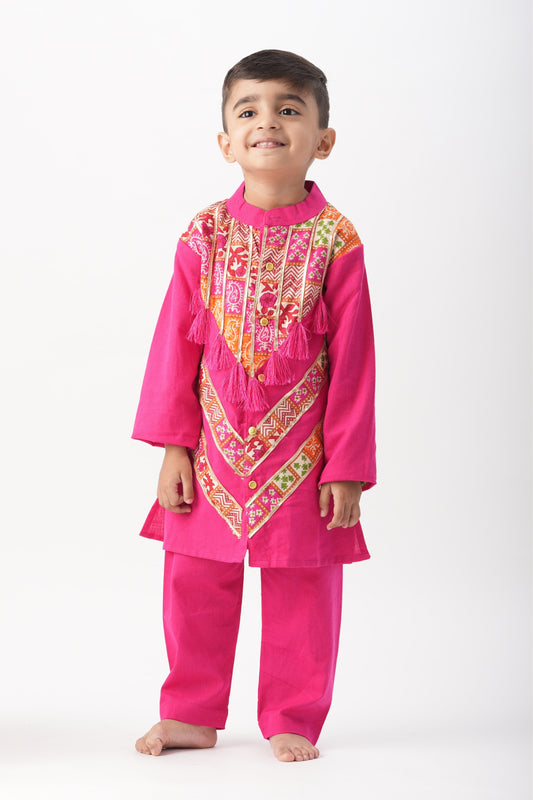 Boys Saavan 2.0 Pure Cotton Ethnic Clothing set - Pink Lehriya
