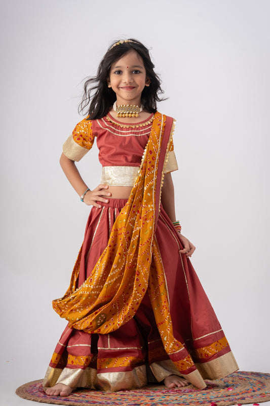 Girls Ghoomar Pure Cotton Chaniya Choli Ethnic Clothing set - Cinnamon Red