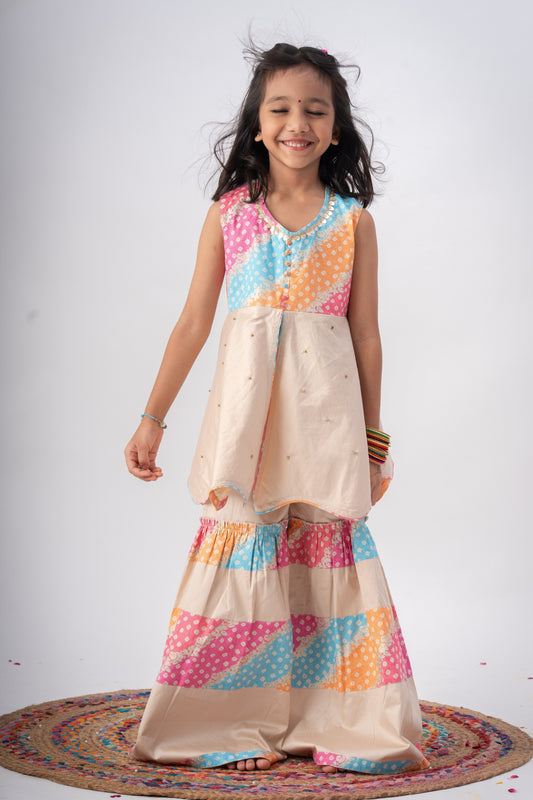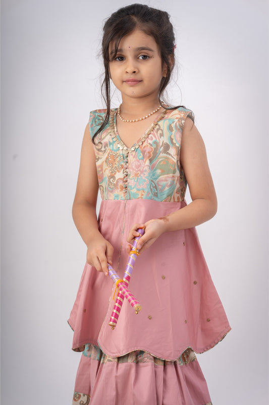 Girls Sitara Kurti and Kalidar Sharara set with Dupatta - Dust Pink