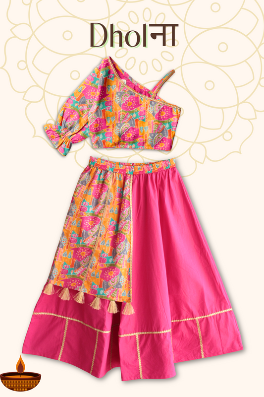 Girls Dholna Pure Cotton Chaniya Choli Ethnic Clothing set - Pink