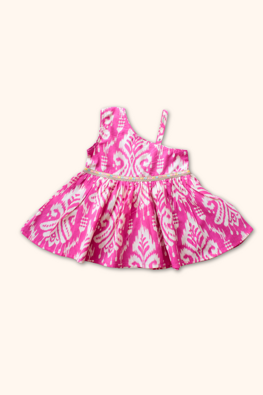 Girls Saavan Pure Cotton Ethnic Clothing set - Pink Ikkat print