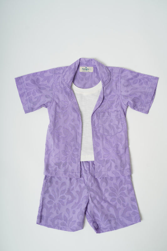 Boys Textured Cotton Lavender Resort Wear Set With Free Beach Hat