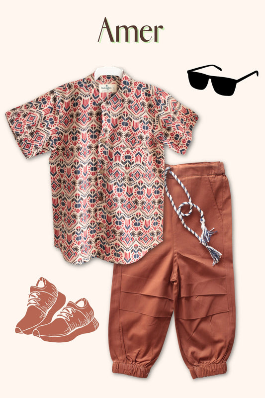 | Boys Leo Resort Wear Set - Orange Brown | Rs. 1,299/- |