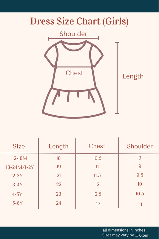 Size: Before picking a dress, get your kid's measurements right. Look at our size guide for that ideal fit.