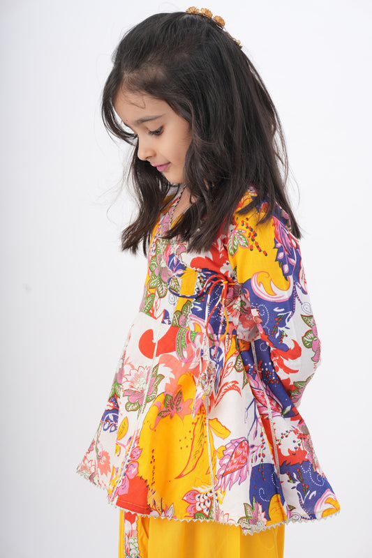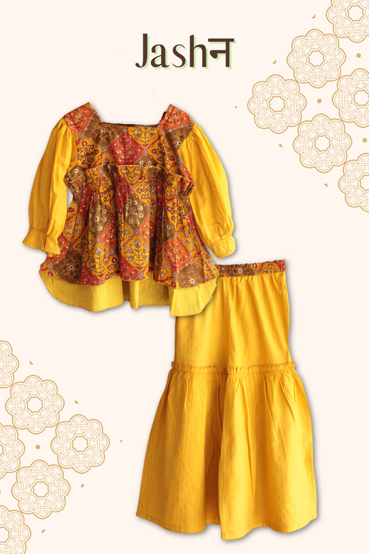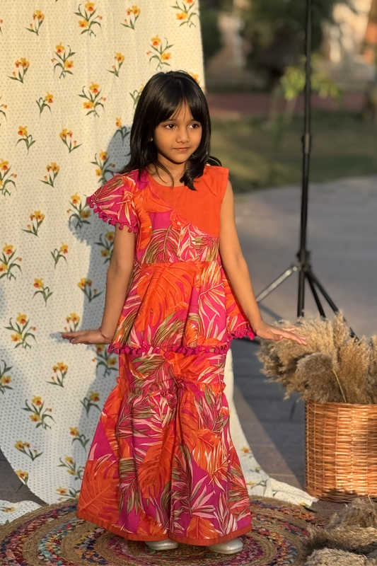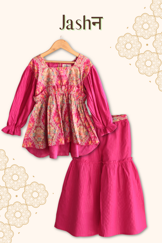 Girls Jashn High Low Printed top with Sharara set