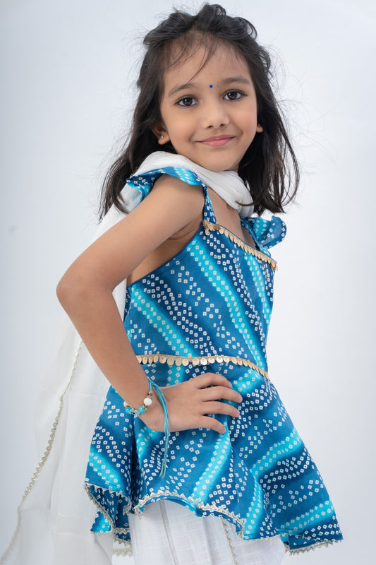 Girls Saavan 2.0 Pure Cotton Kurti Salwar & Dupatta Ethnic Clothing set - Blue Bandhej
