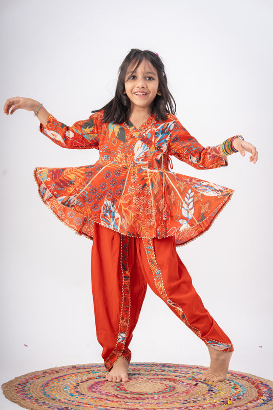 Girls Radhe Top and Dhoti Pants Ethnic Clothing Set - Rust