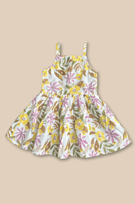 Girls Pure Cotton White Summer Dress - Floral print