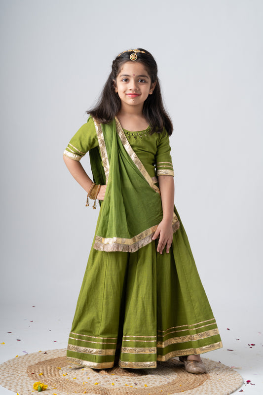 Girls Padmavati Pure Cotton Chaniya Choli Ethnic Clothing set - Green