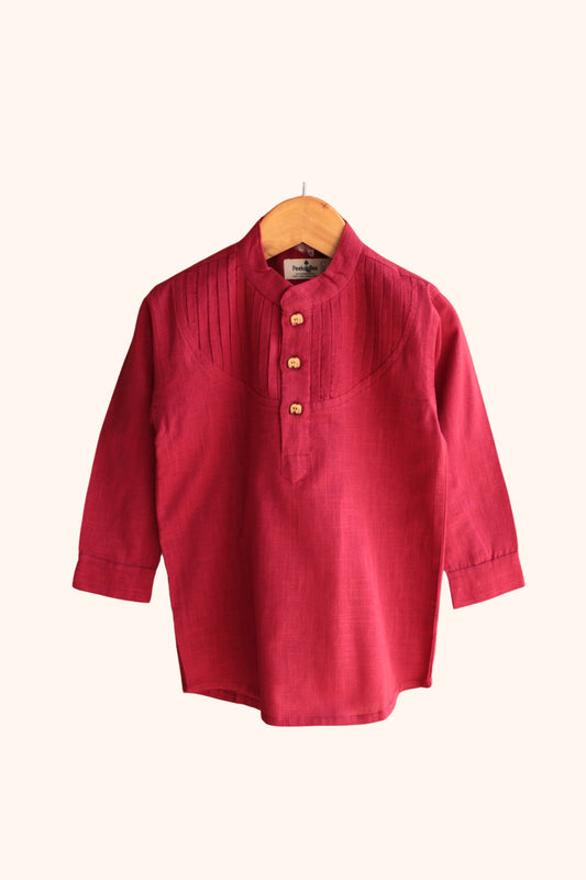 Boys Pure Cotton Red Shirt with pintucks detailing