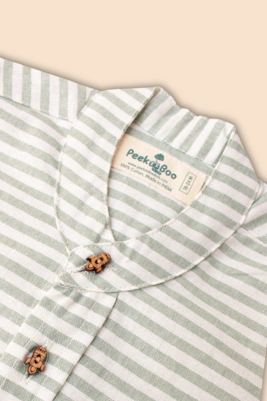 Boys 100% Cotton Shirt for Summer - Green Striped Yarn Dyed