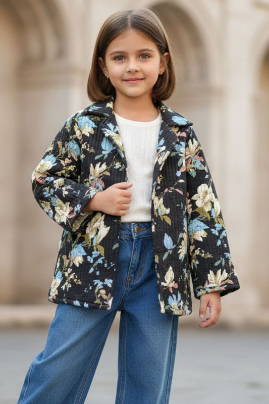 Girls Pure Cotton Printed Quilted Warm Jacket - Boho