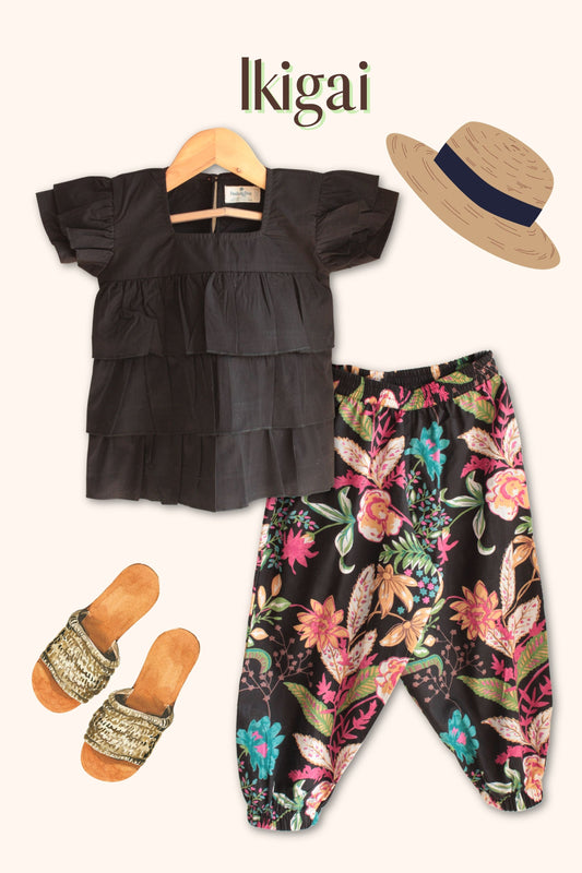 Girls Ikigai Pure Cotton Clothing Set - Black / Red