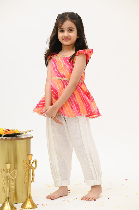 Girls Saavan 2.0 Pure Cotton Kurti Salwar & Dupatta Ethnic Clothing set - Pink Leheriya