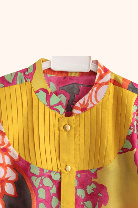 Boys Rangrez Color Block Kurta & Pant set (Yellow/Green)