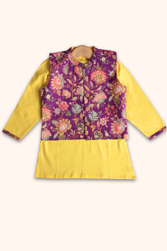 Boys Kesari Kurta Pant & Jacket 3 piece ethnic clothing set - Purple
