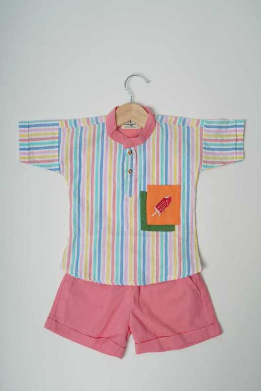 Boys Seersucker 100% Cotton Multicolor shirt with pink shorts clothing set