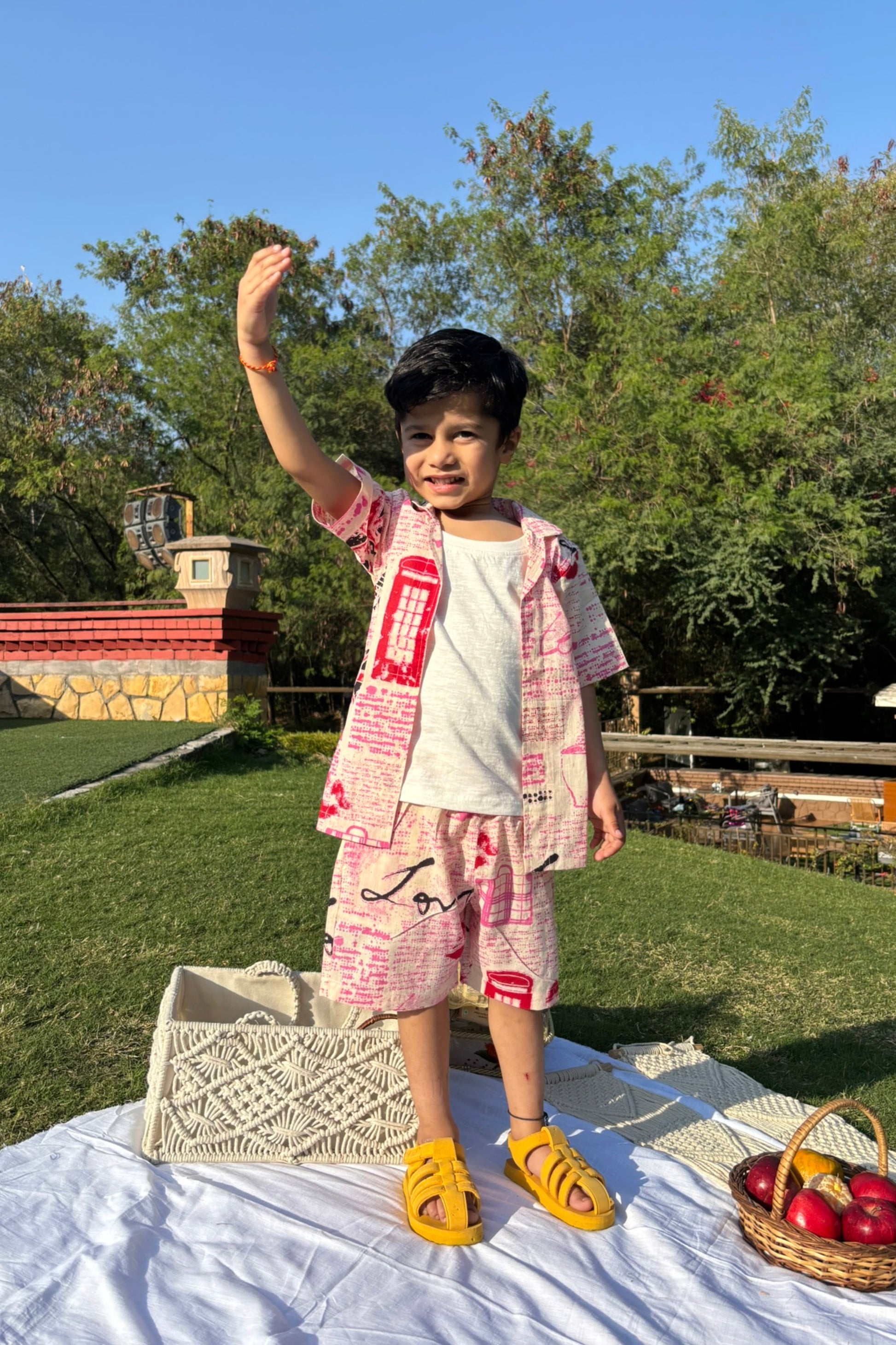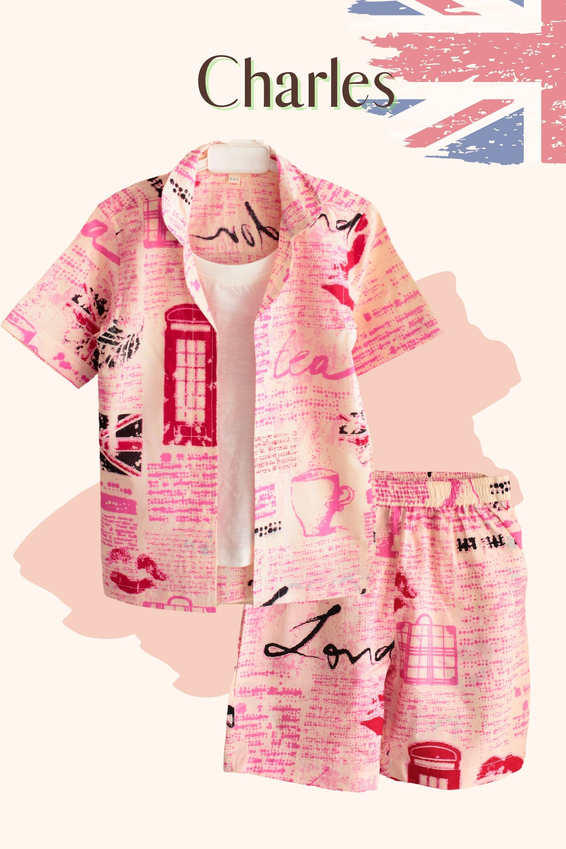 Elevate your child's style with our Boys Charles Resort Wear Set - London Pink. This set exudes a relaxed feel, perfect for any luxurious getaway. Made from 100% plush cotton, the half-sleeved shirt has an attached tee for a laid-back look. Paired with premium, airy cotton pants with a printed patch. Make sure to grab one for your next trip.