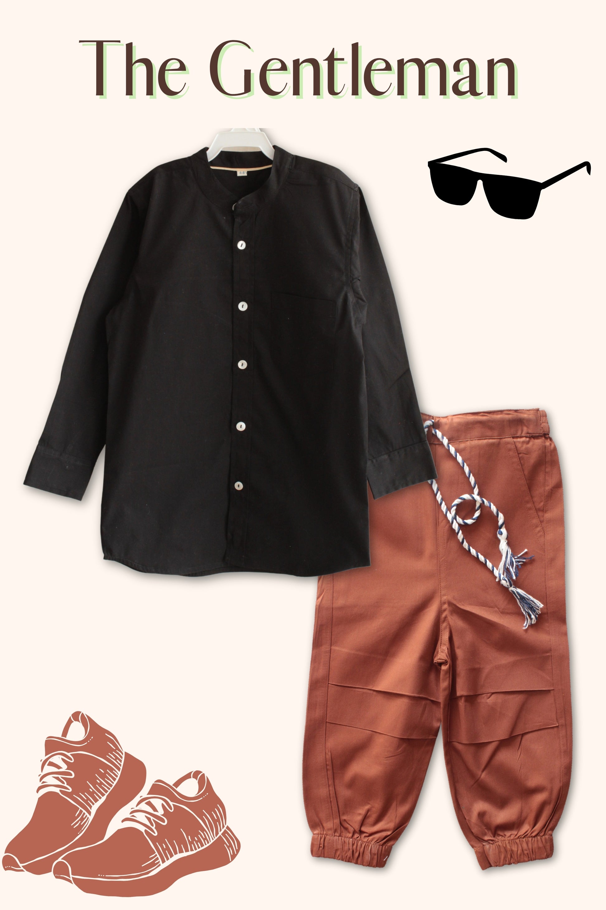 Boys Gentleman Pure Cotton Classic Clothing Set - Black Brown