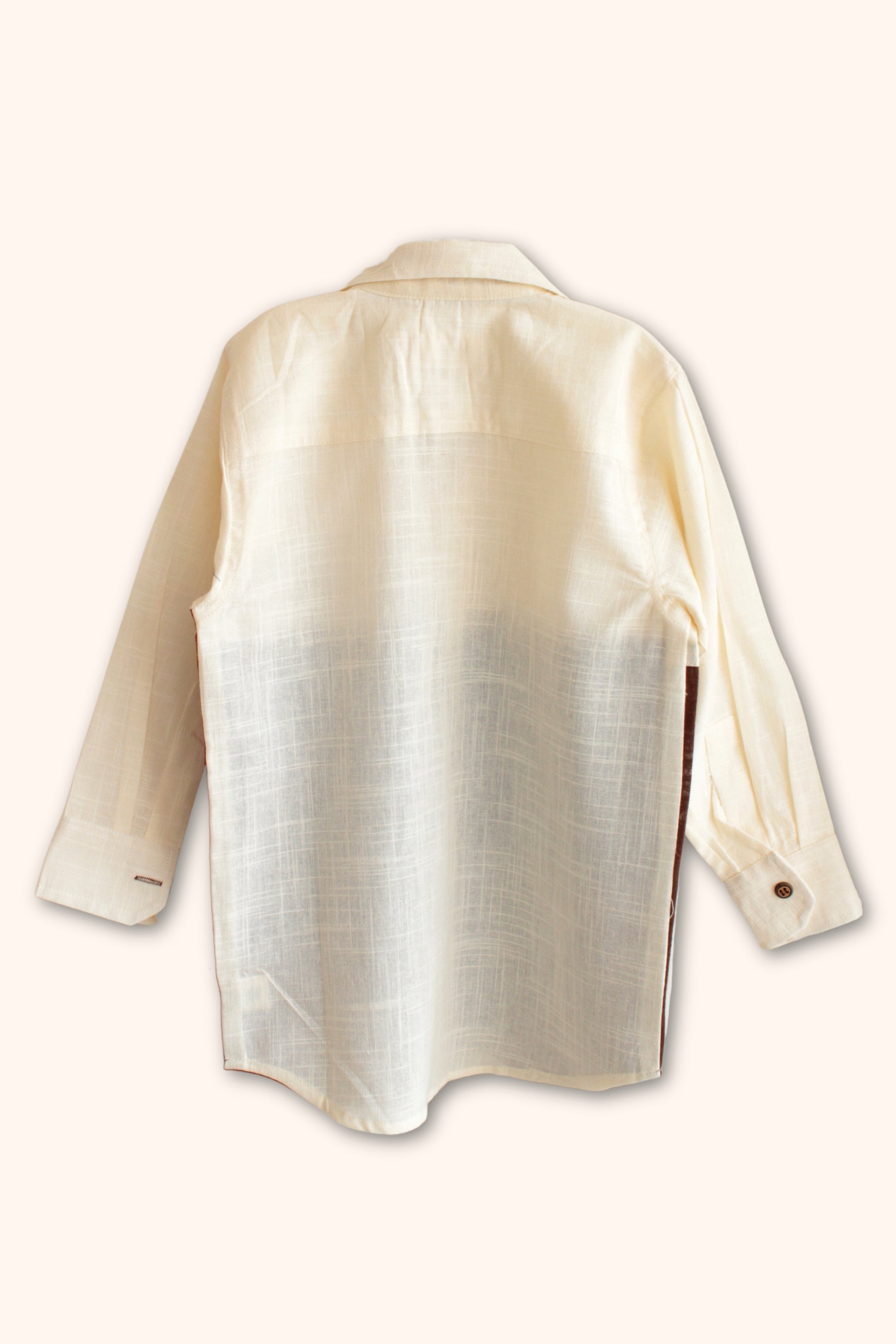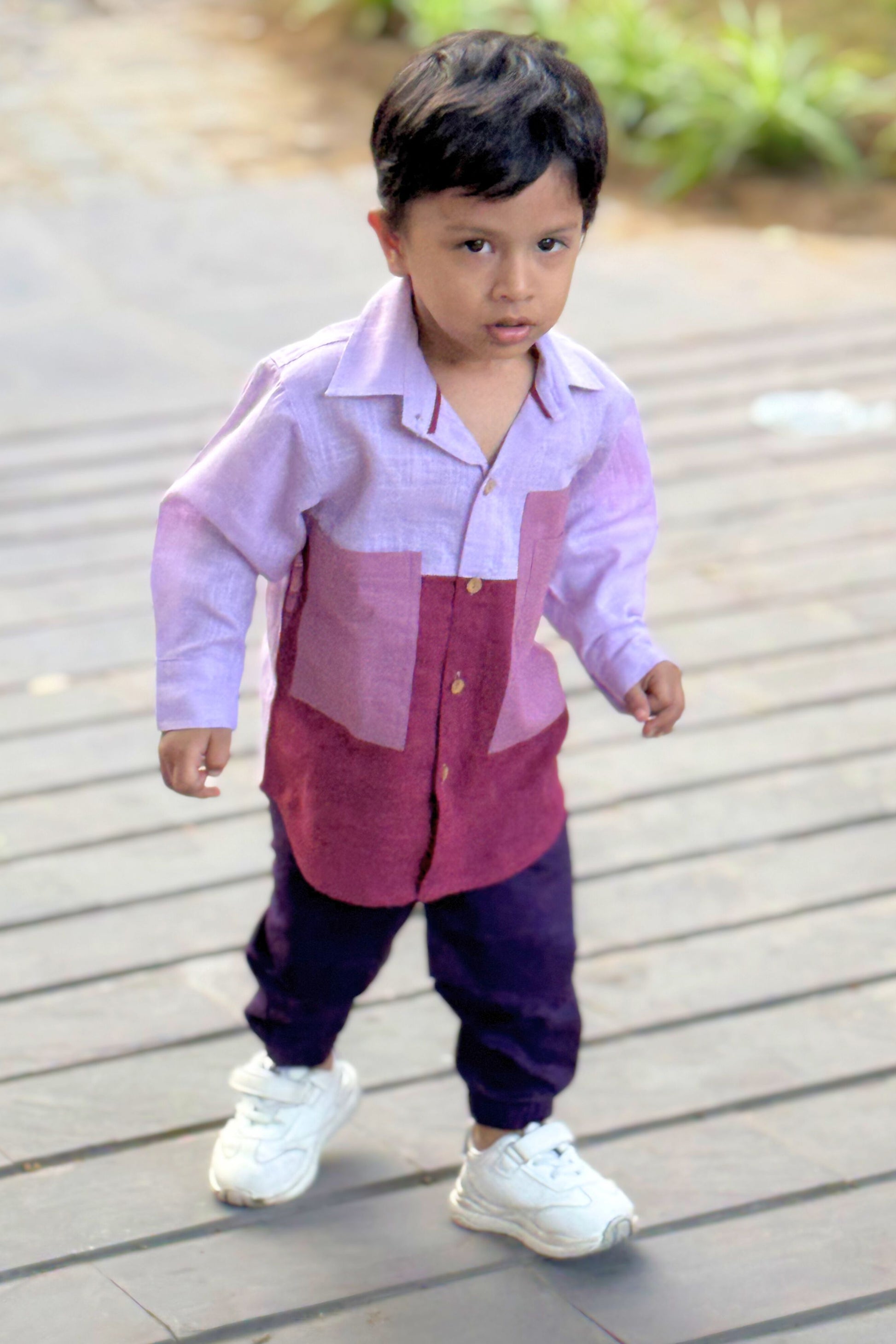 Designed for the young gentleman with timeless style, this elegant set features a colorblock shirt with a linen-like texture paired with bio-wash twill cargo pants, both crafted from 100% pure cotton for ultimate comfort and sophistication. The perfect blend of classic charm and modern ease, this outfit is ideal for special occasions and stylish outings.