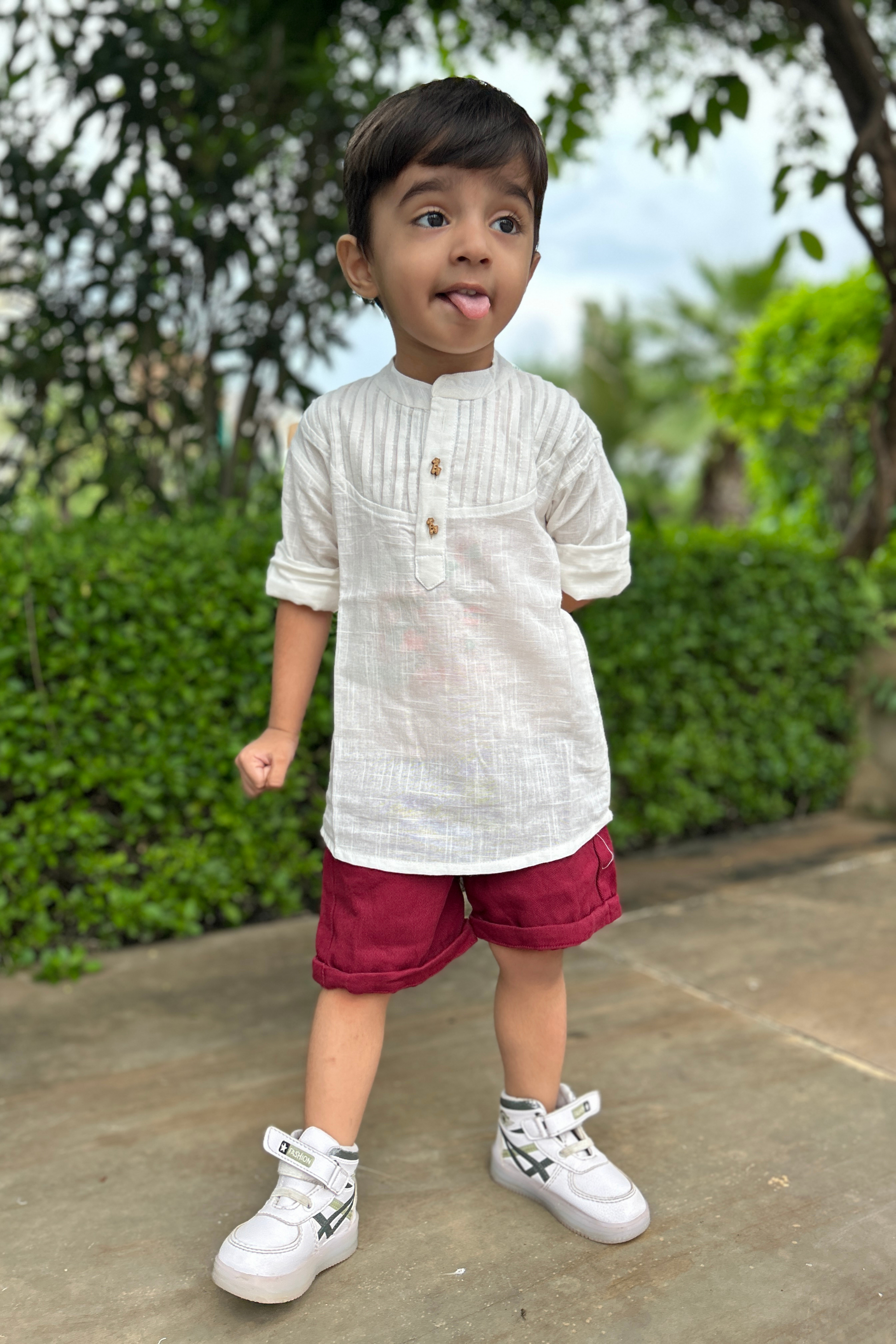 Boys Pure Cotton Clothing Set - White Pintuck Shirt & Shorts