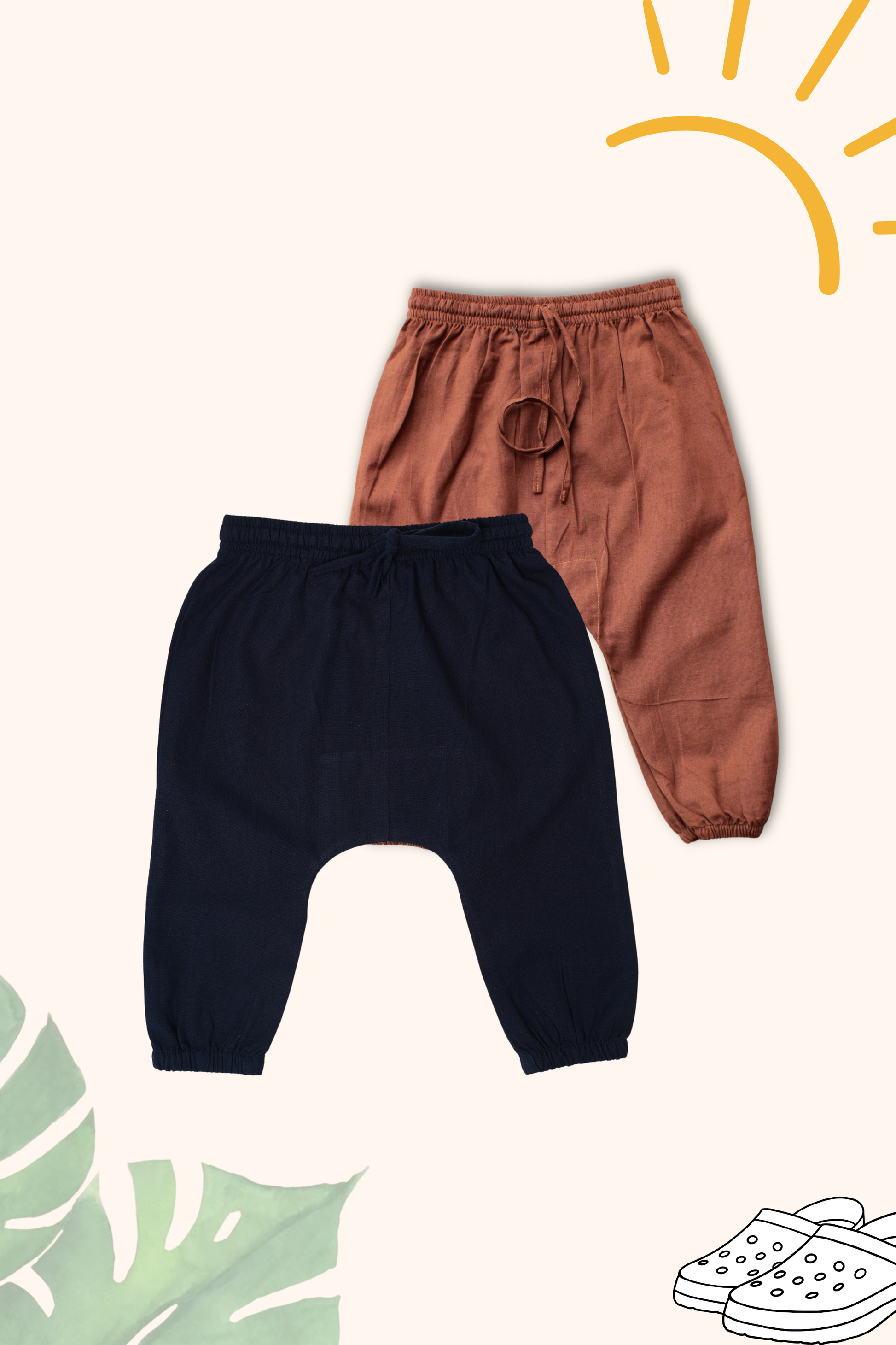 Say goodbye to stiff, uncomfortable trousers and hello to ultimate comfort and durability with our Boys Pure Cotton Miyani Pants Combo! 2 Pants set - Designed with miyani for an added touch of comfort and durability, these pants feature elastication at the waist and hem for the perfect fit that will last all day long. Your little one will have never looked so stylish and felt so good! (And we promise, no more complaining about itchy, tight waistbands!)