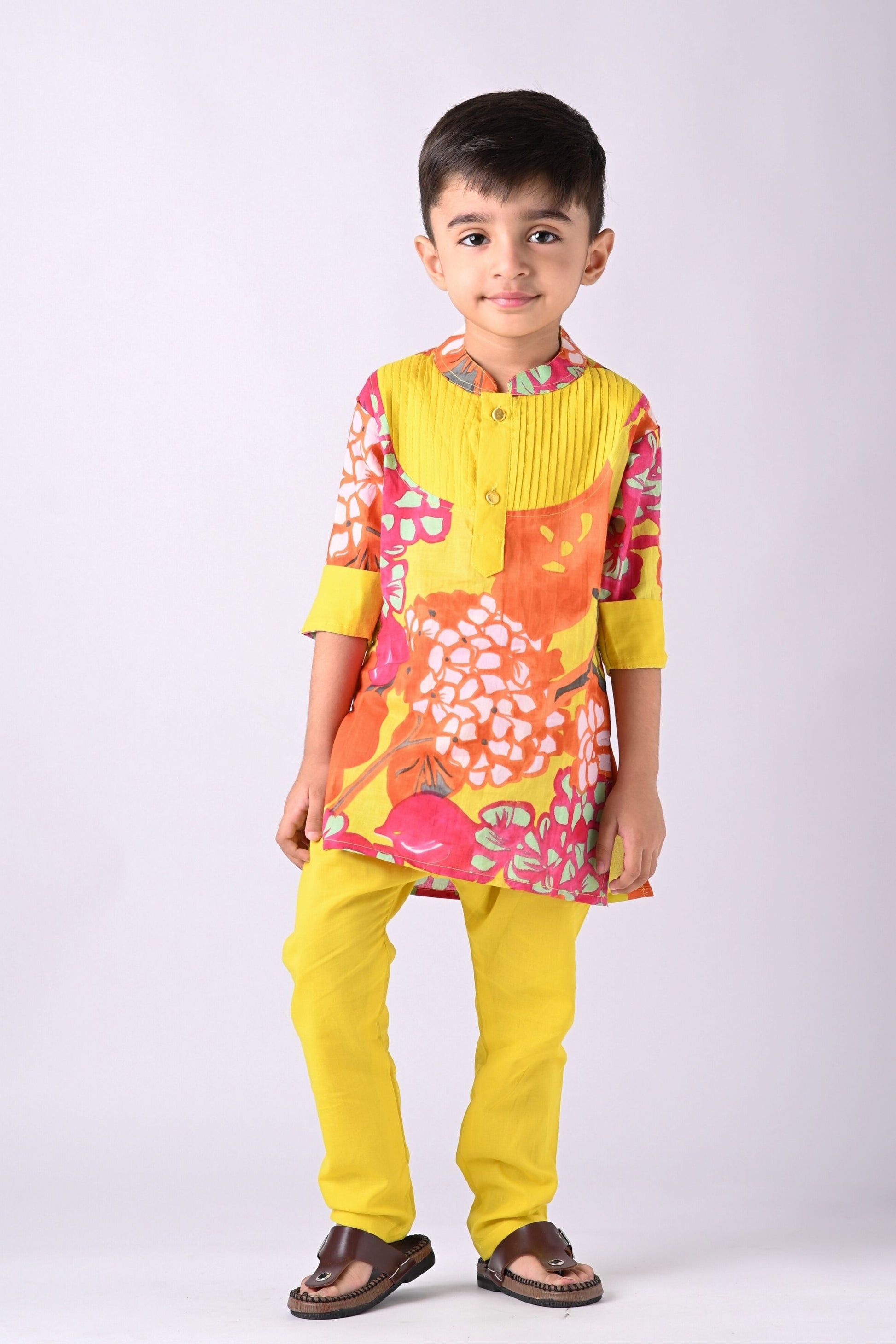 Boys Rangrez Color Block Kurta & Pant set (Yellow/Green)