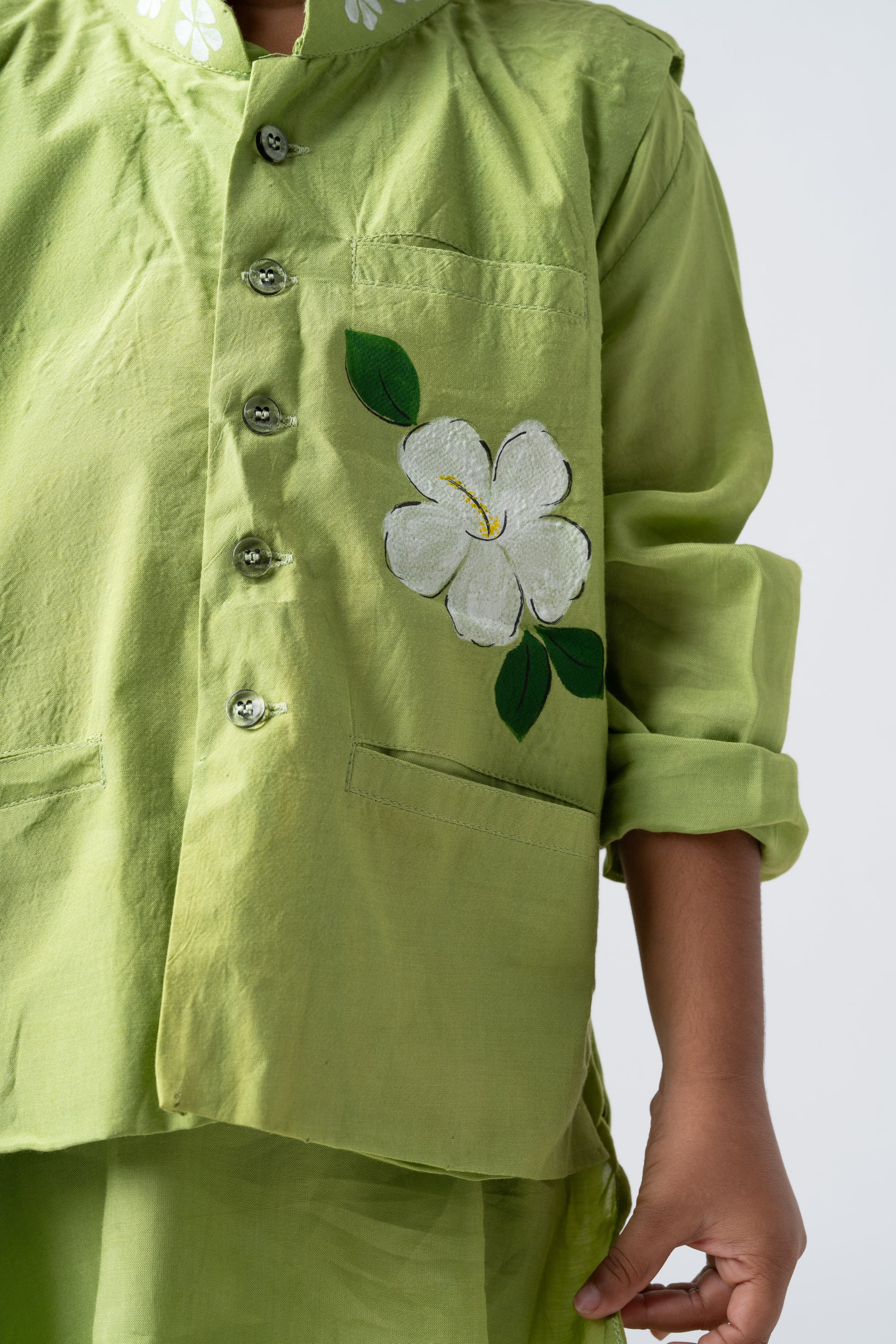 Boys Silk Handpainted Kurta Pant & Jacket 3 piece ethnic clothing set - Garden of Promise