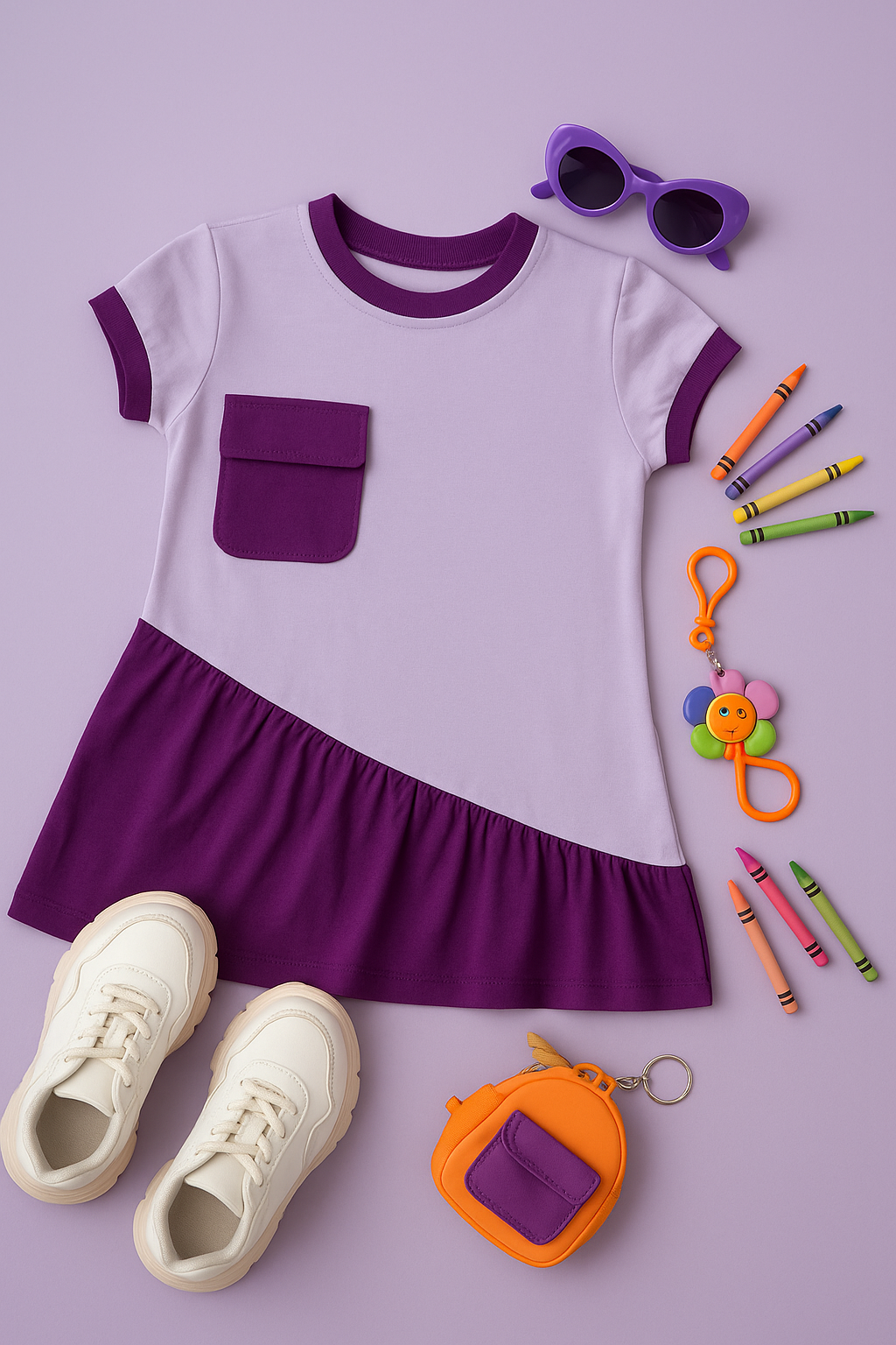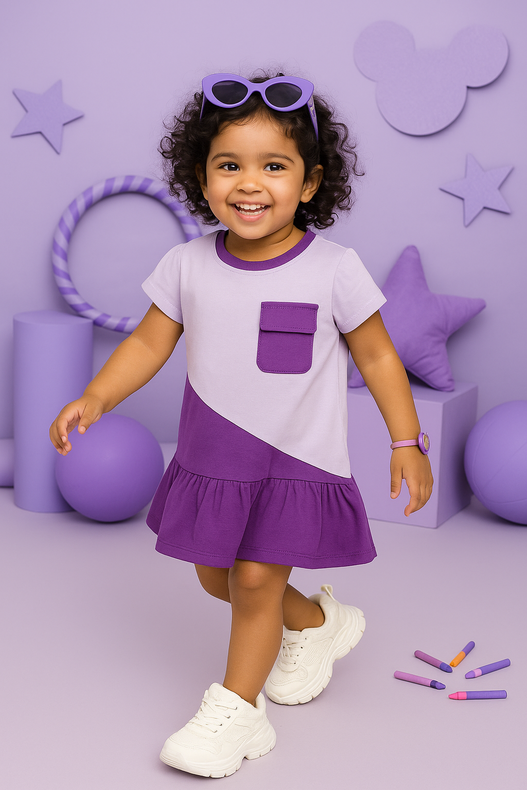 Girls 100% Cotton Knit Lavender Purple Dress with 3D pocket