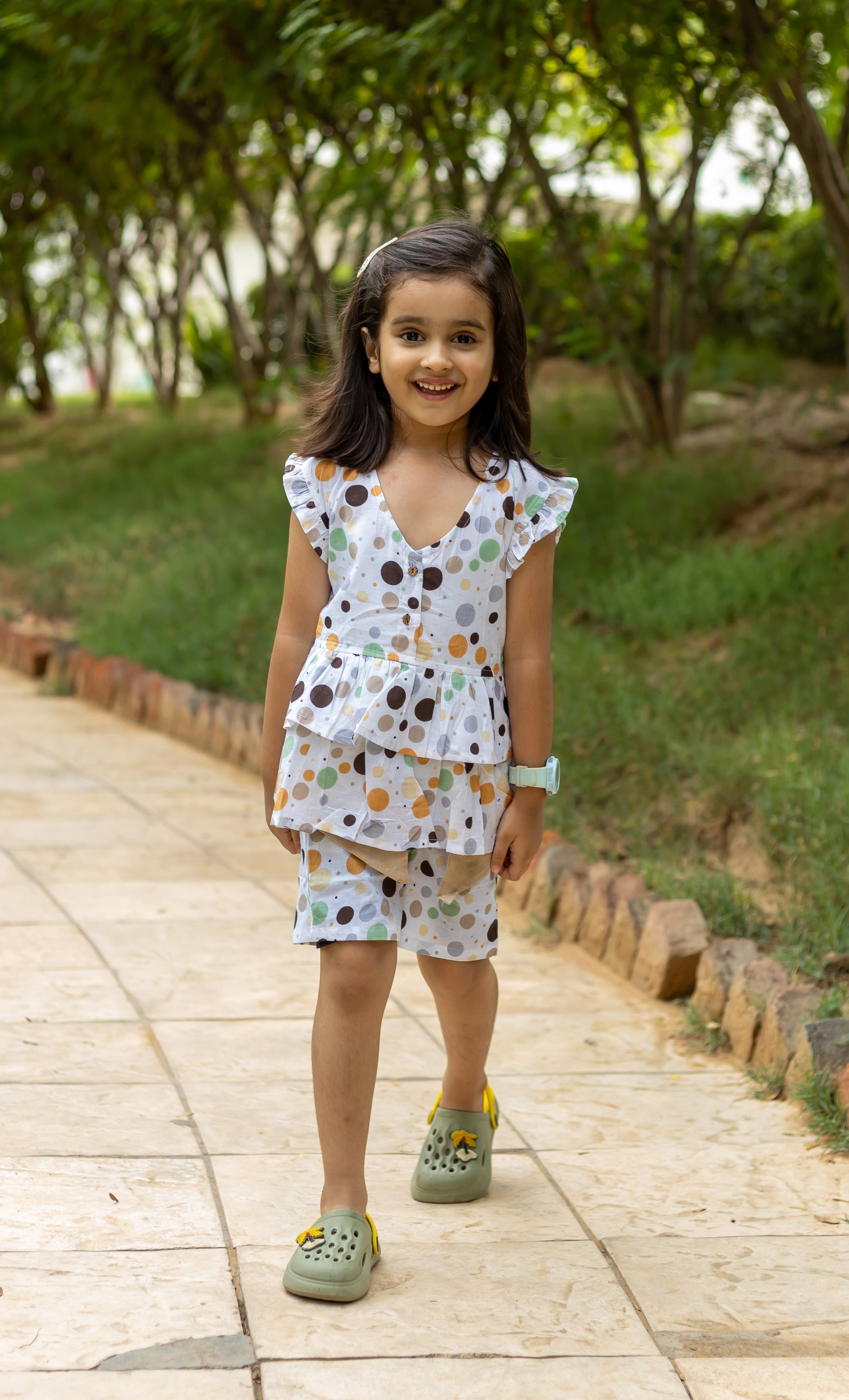 Get ready to flaunt your effortless fashion flair with the Girls Noor Pure Cotton Clothing Set! It comes in polka dots print - that are sure to catch some eyes. Whether you want to make a bold statement or just kick back, this all-cotton set promises both cool style and fabulous comfort. Don't miss out on adding this funky set to your kiddo's fashionable and fun wardrobe! Perfect for your little fashionista.