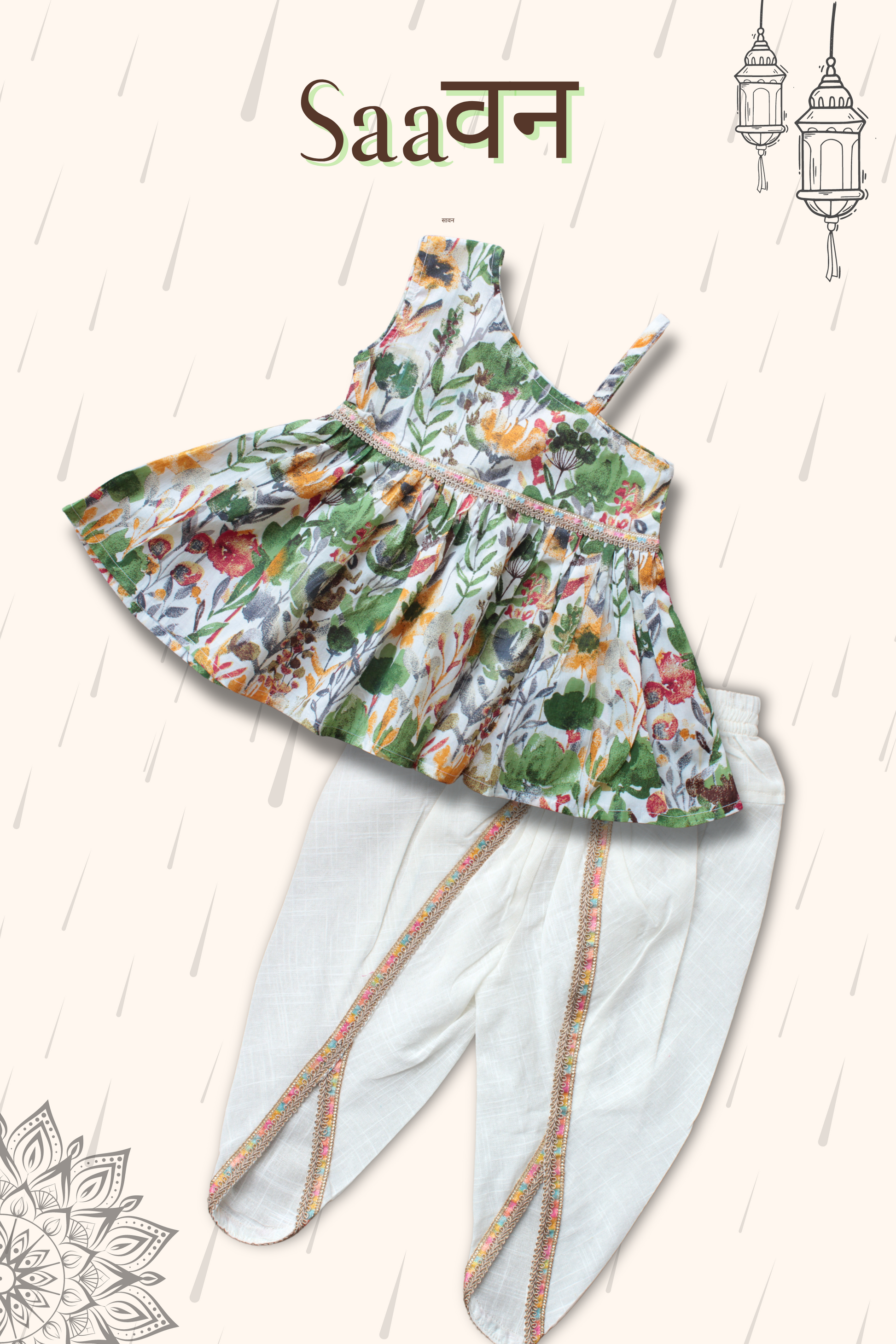 Girls Saavan Pure Cotton Ethnic Clothing set - Abstract green