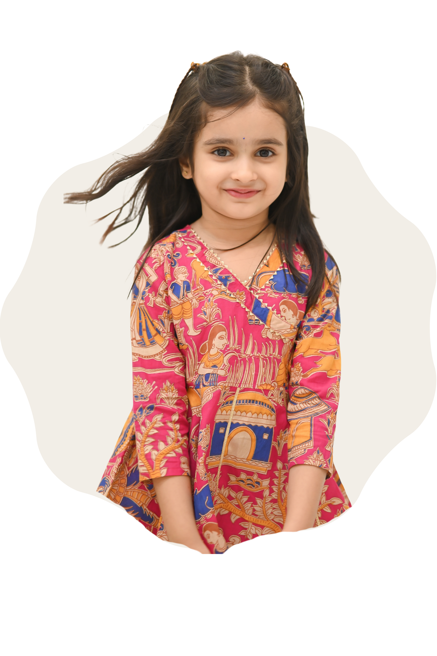 Introducing our limited edition Girls Saavan Pure Cotton Ethnic Clothing set - pink ikkat print, perfect for this festive season. Made with soft cotton fabric, in vibrant color and print, and adorned with delicate multicolor lace, this saavan collection is a must-have for any fashion-forward young lady. Elevate her style with this exclusive ethnic wear.
